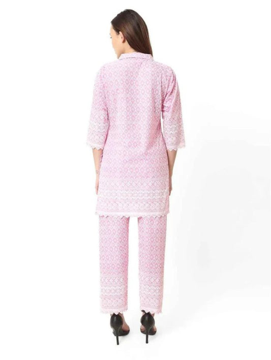 SaleSave 60%Women Chiken Embroidery Cotton Blend Pink Cord Set