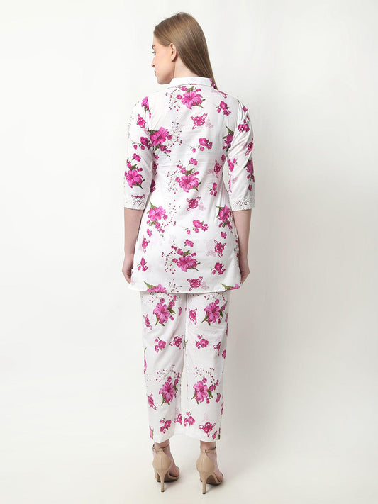 Women Purple Floral Printed Cotton Coord Set with 3/4 Sleeves