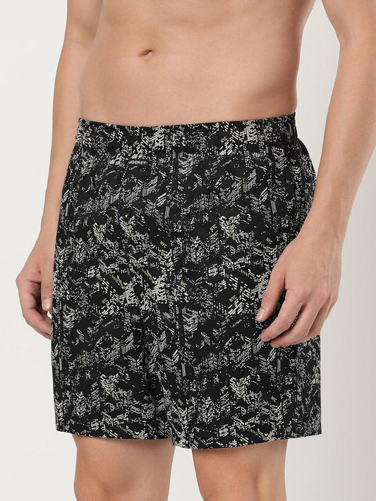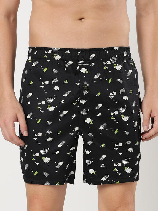 Jockey Men's Super Combed Cotton Satin Weave Printed Boxer Shorts with Side Pocket - Black (Random Prints)