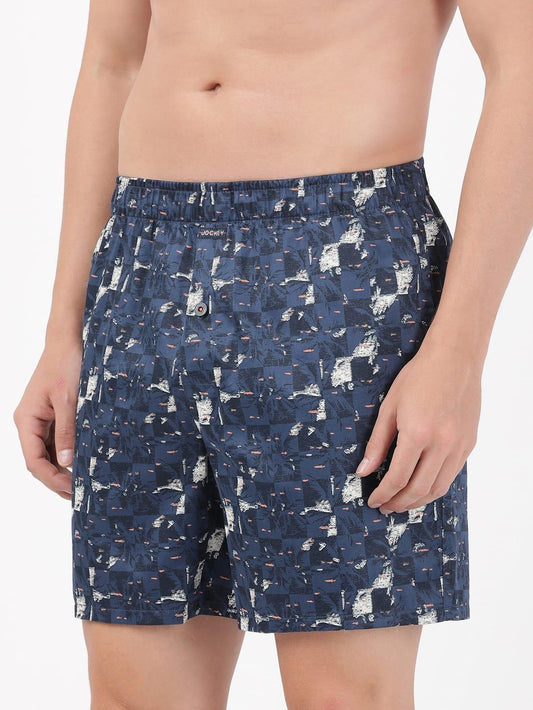 Jockey Men's Super Combed Cotton Satin Weave Printed Boxer Shorts with Side Pocket - Navy (Random Prints)