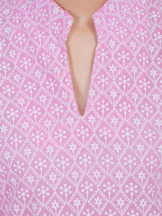 Trendzmy Women Pink Chicken Embroidered Straight Kurta