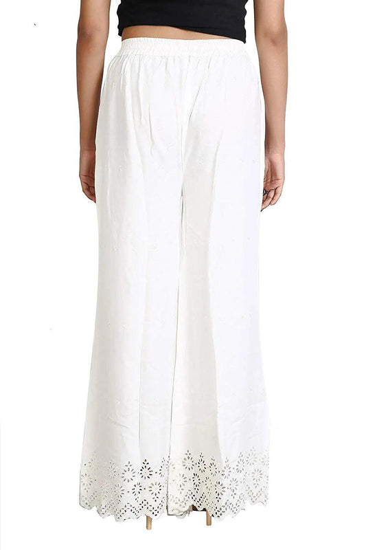 Singhania Woman's White Reyon Chiken Embroidery Plazzo