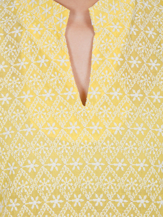 Regular price From Rs. 260.00Regular priceUnit price perRs. 999.00Sale price From Rs. 260.00Trendzmy Women Yellow Chicken Embroidered Straight Kurta