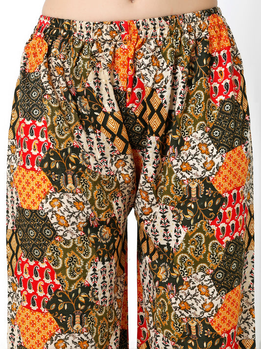 Trendzmy Women's Cream & Red Printed Cotton Palazzo Pants with Pockets – Fits Size L(S to L) and Fits Size XXL (XL to 3XL)
