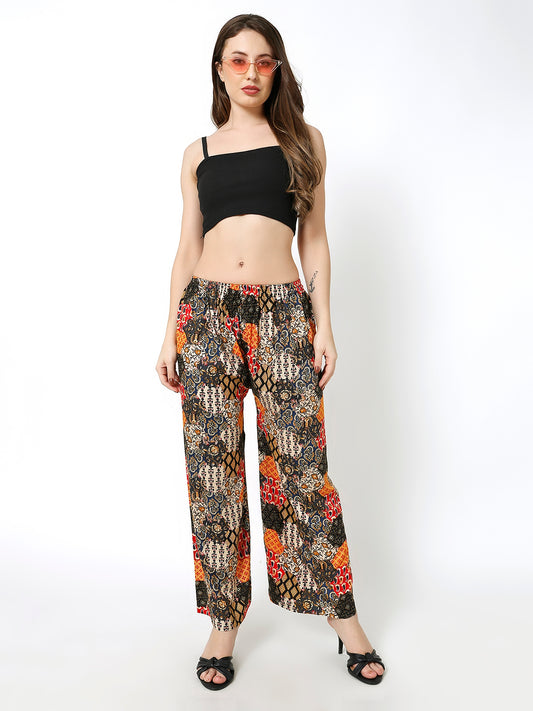 Trendzmy Women's White and Orange Printed Cotton Palazzo Pants with Pockets – Fits Size L(S to L) and Fits Size XXL (XL to 3XL)