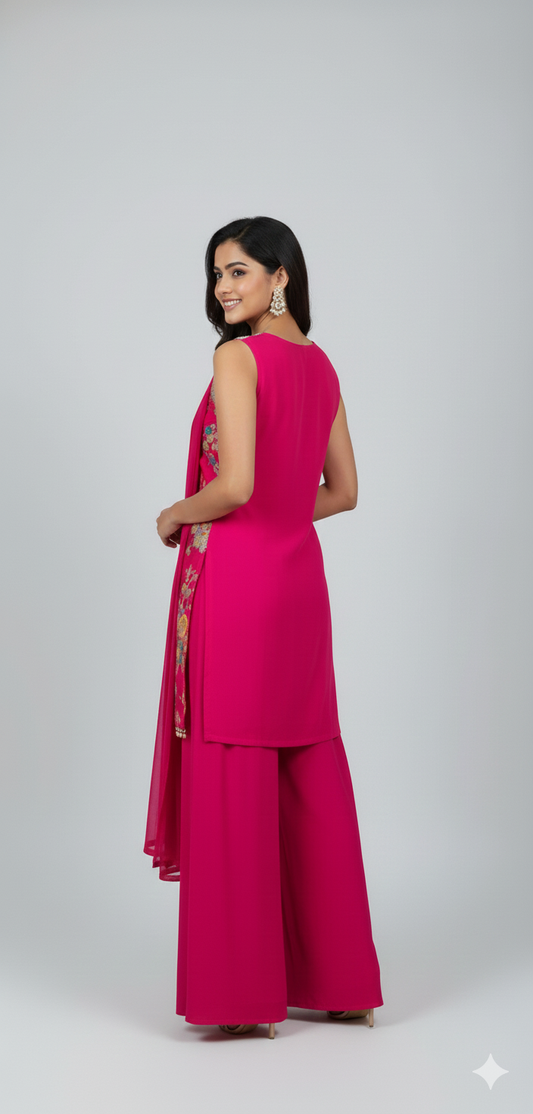 Rani Pink Silk Sharara Set with Multi-Thread Embroidery
