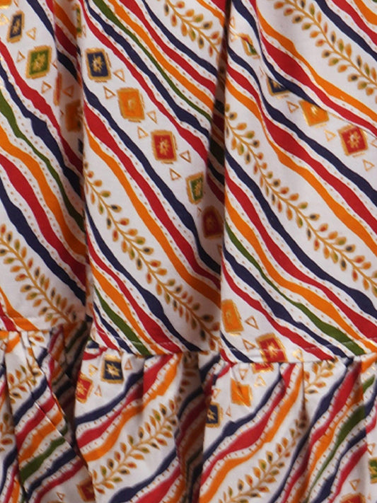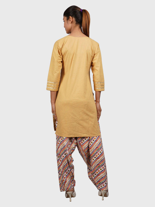 Trendzmy Women Plain Beige Kurta with Stripe Orange Salwar and Dupatta