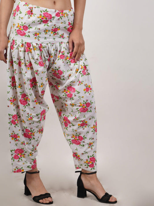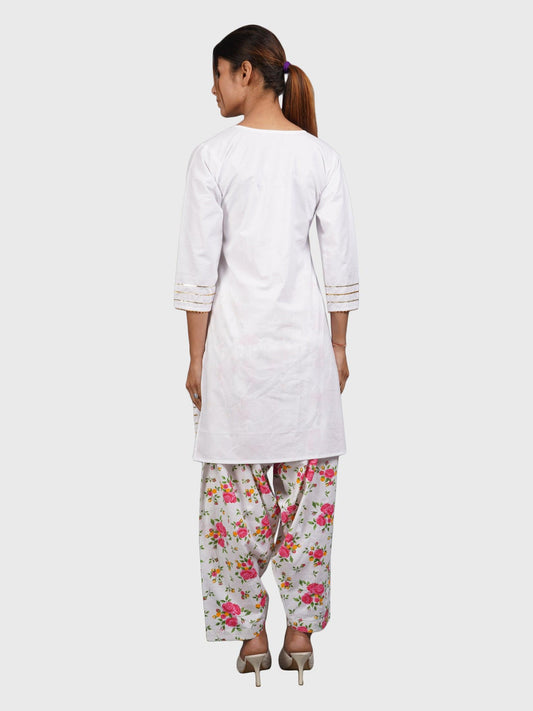 Trendzmy Women Plain White Kurta with Printed Pink Salwar and Dupatta