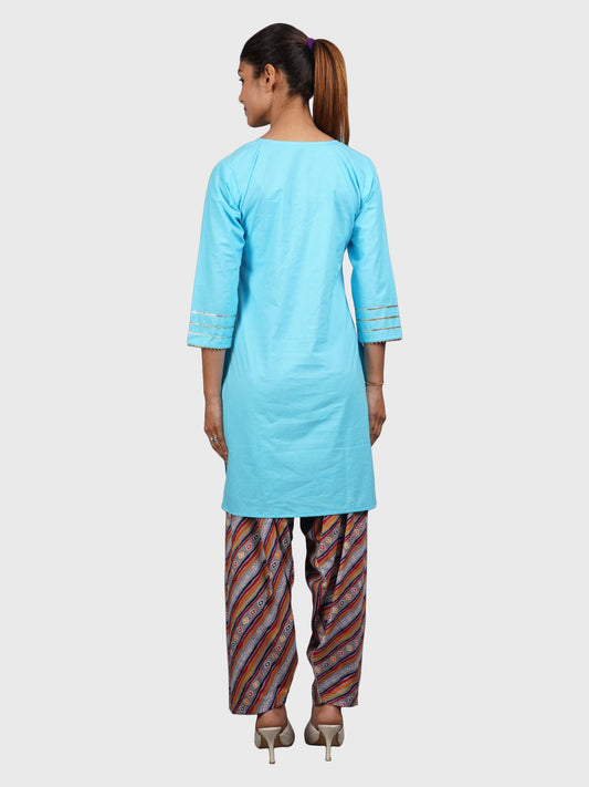 Trendzmy Women Plain Sky Kurta with Stripe Blue Salwar and Dupatta
