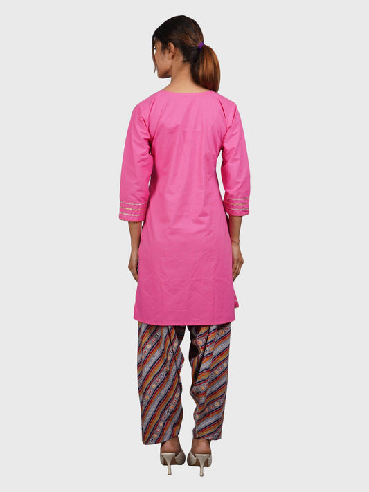 Trendzmy Women Plain Pink Kurta with Printed Salwar and Dupatta
