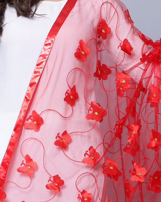 SaleSave 65%Trendzmy Net Self Design Butterfly Red Women Dupatta