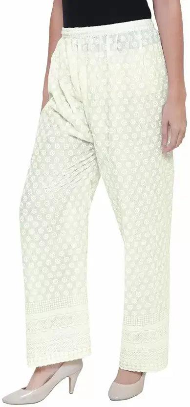 Singhania Women's White Chicken Rayon Palazzo Flaired Pants wrinkle free