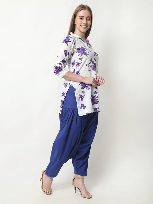 Trendzmy Women Apple Cut Purple Floral Print Pure Cotton Straight Kurta Set