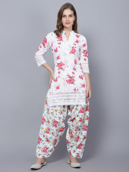 Trendzmy Women Printed Pink Kurta and Salwar Set Pure Cotton