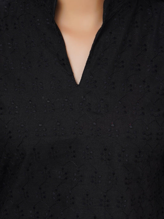 Trendzmy Women Chiken Embroidery Cotton Black Kurta and Salwar Set
