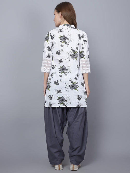 Trendzmy Women Apple Cut Grey Floral Print Pure Cotton Straight Kurta Set