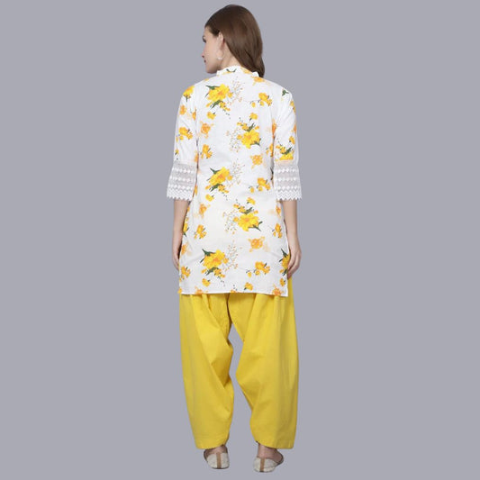 Regular price $299.00 USDRegular priceUnit price / per$999.00 USDSale price $299.00 USDWomen Apple Cut Yellow Floral Print Pure Cotton Straight Kurta