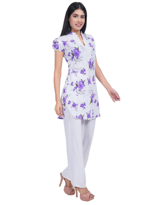 Regular price $299.00 USDRegular priceUnit price / per$999.00 USDSale price $299.00 USDWomen Apple Cut Purple Floral Print Pure Cotton Straight Kurta