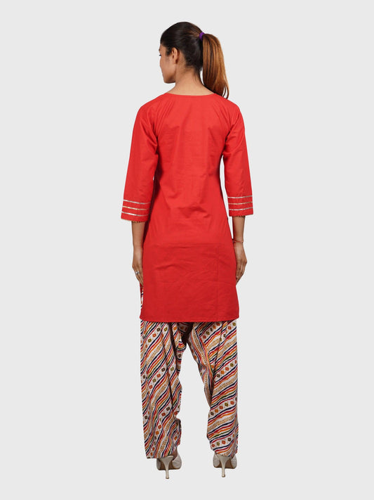 Women Printed Top Red Kurta and Salwar Set Pure Cotton