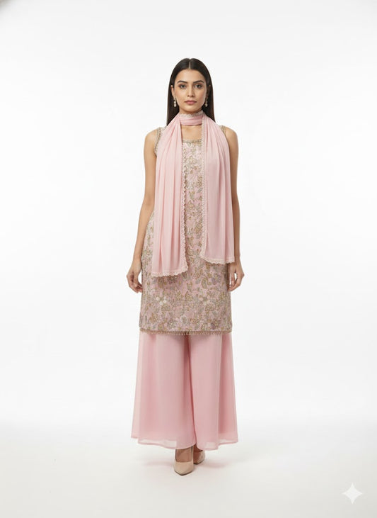 Baby Pink Georgette Kurta Palazzo Set-FREE SIZE (Copy)