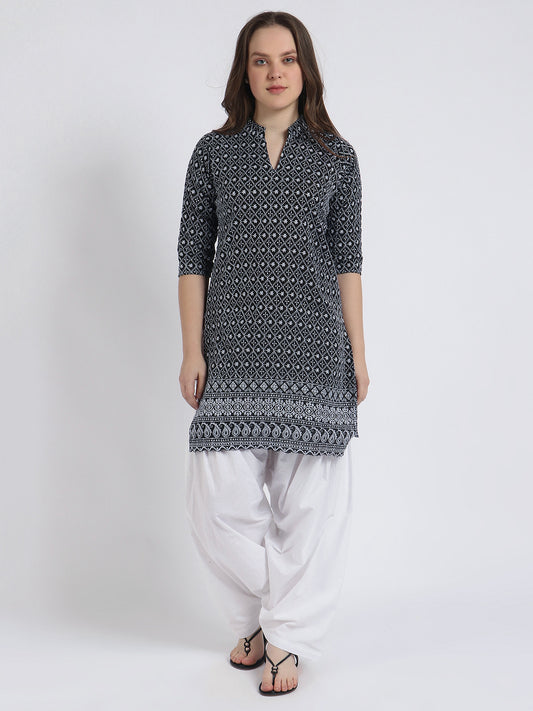 Trendzmy Women Chiken Embroidery Cotton Black Kurta and Salwar Set