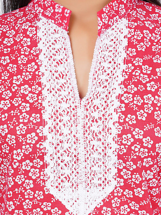 SaleSave 74%Trendzmy Women Red Floral Printed Straight Kurta