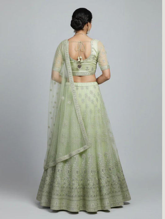 Unstitched Parrot Green Net Partywear Lehenga Choli Set (Unstitched)