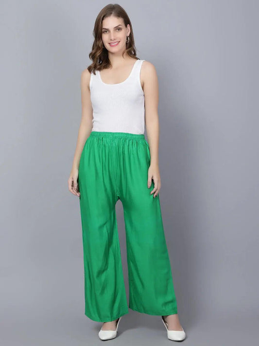 SaleSave 66%Singhania Women's Green Plain Rayon Palazzo