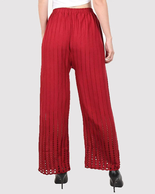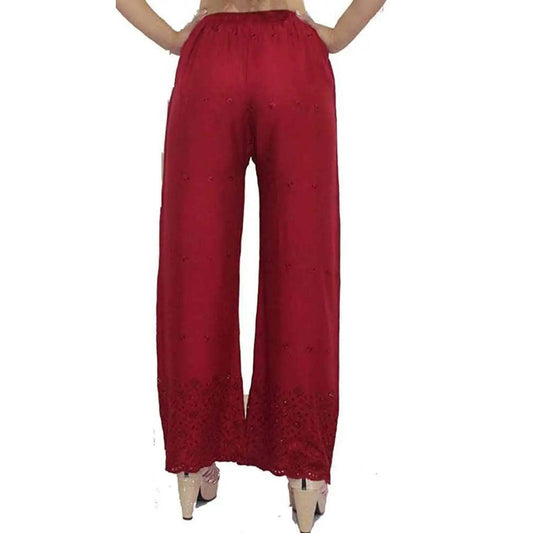 Singhania Woman's Maroon Reyon Chiken Embroidery Plazzo