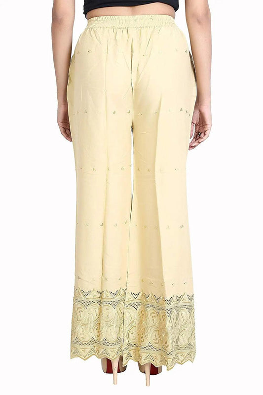 Singhania Woman's Cream Reyon Chiken Embroidery Plazzo