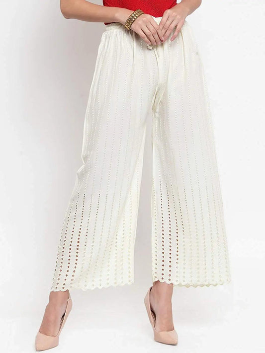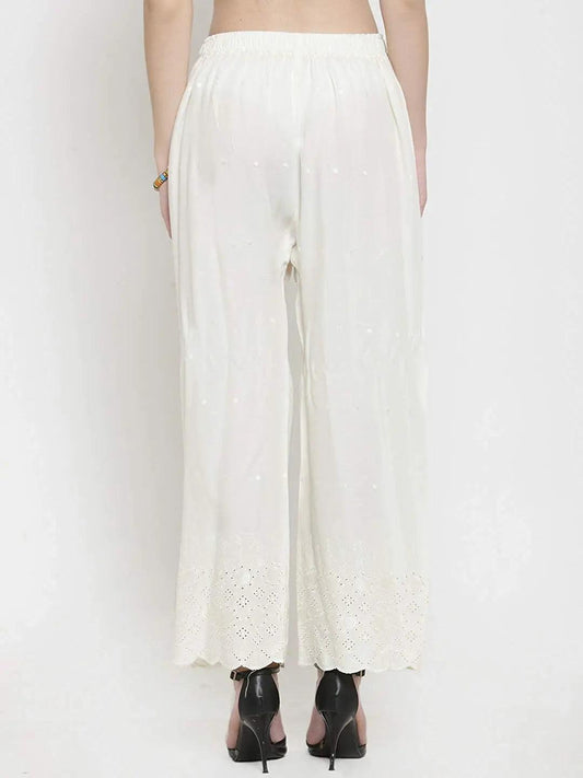 Singhania Woman's Off White Reyon Chiken Embroidery Plazzo