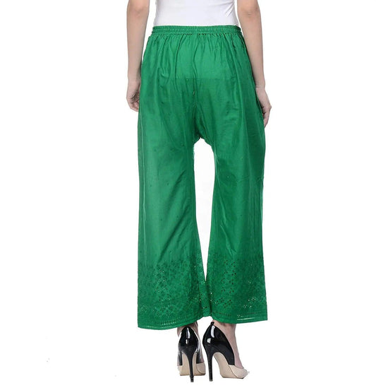 Singhania Woman's Rama Green Reyon Chiken Embroidery Plazzo