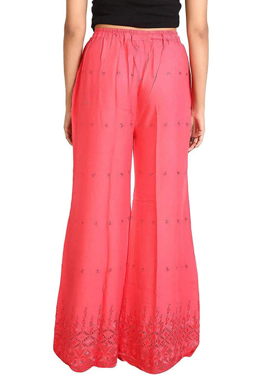Singhania Woman's Pink Reyon Chiken Embroidery Plazzo