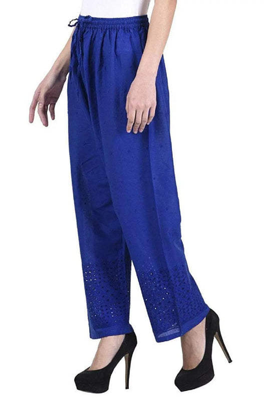 Singhania Woman's Royal Blue Reyon Chiken Embroidery Plazzo