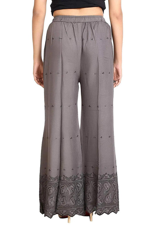 Singhania Woman's Grey Reyon Chiken Embroidery Plazzo