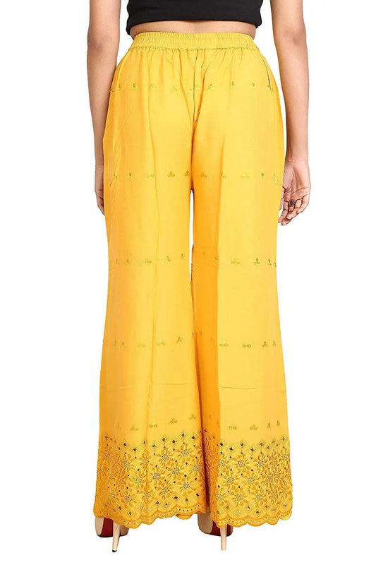 Singhania Woman's Mastard Reyon Chiken Embroidery Plazzo