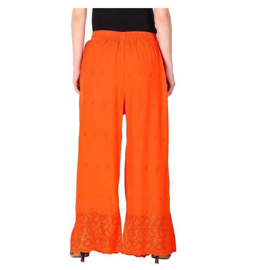 Singhania Woman's Orange Reyon Chiken Embroidery Plazzo