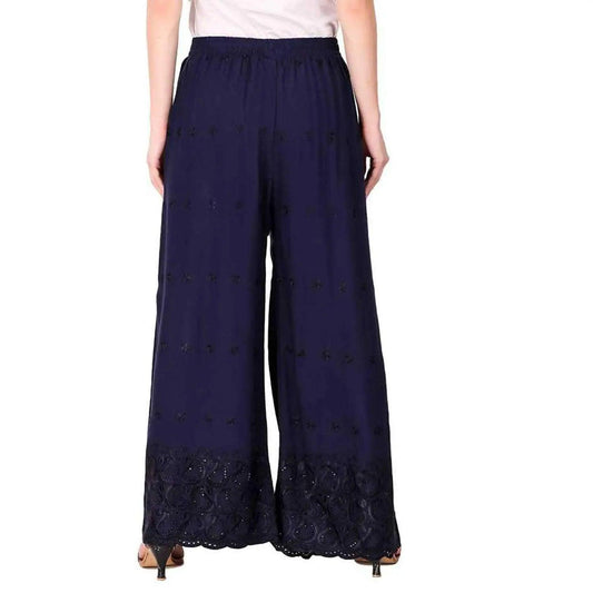 Singhania Woman's Navy Blue Reyon Chiken Embroidery Plazzo