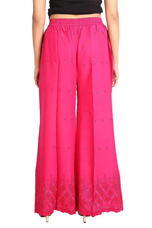 Singhania Woman's Rani Pink Reyon Chiken Embroidery Plazzo