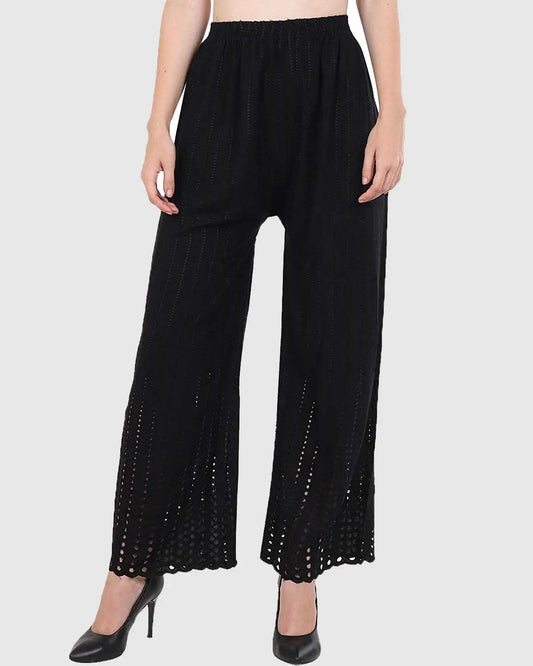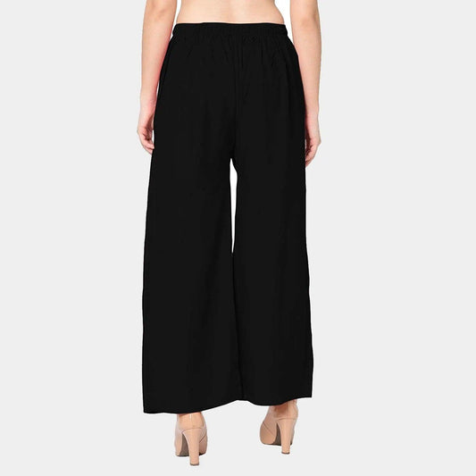 Singhania Women's Black Chicken Rayon Palazzo Flaired Pants wrinkle free