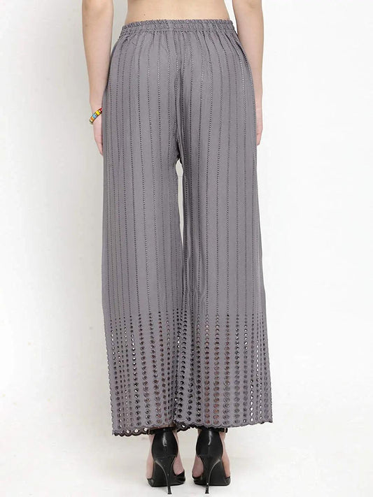 Singhania Women's Grey Chicken Rayon Palazzo Flaired Pants wrinkle free