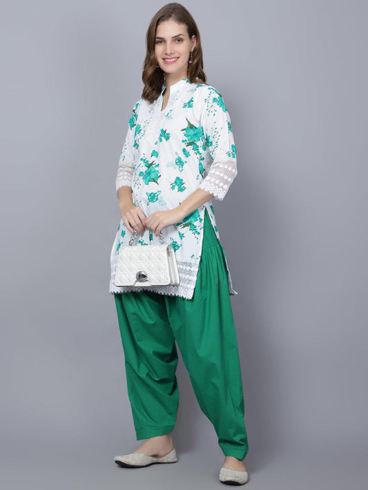 Trendzmy Pack of 2 Women Floral Print Cotton Blend Straight Kurta (Green, White)