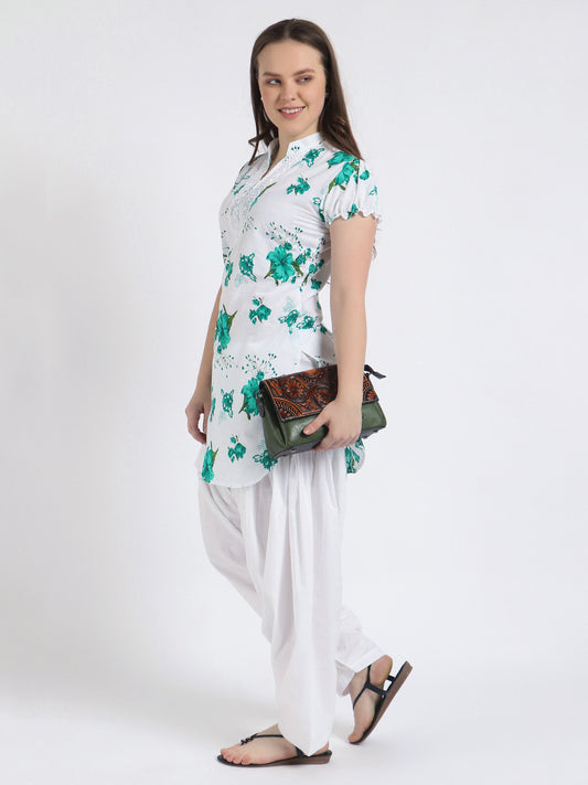 Trendzmy Women Printed Green Kurta and Salwar Set Pure Cotton