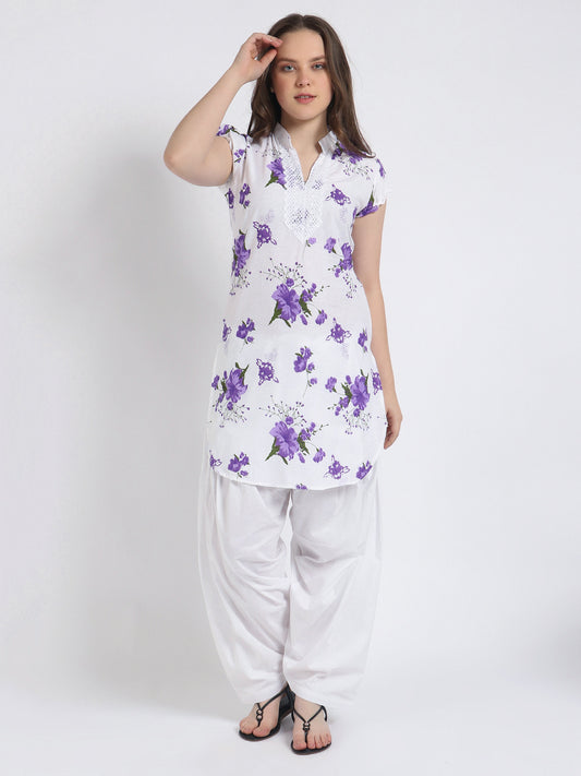 Trendzmy Women Printed Purple Kurta and Salwar Set Pure Cotton