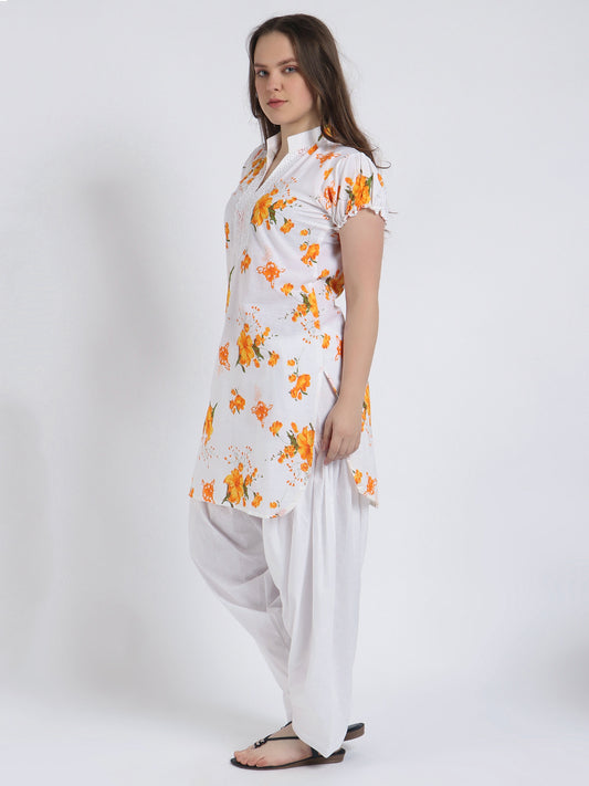 Trendzmy Women Printed Yellow Kurta and Salwar Set Pure Cotton