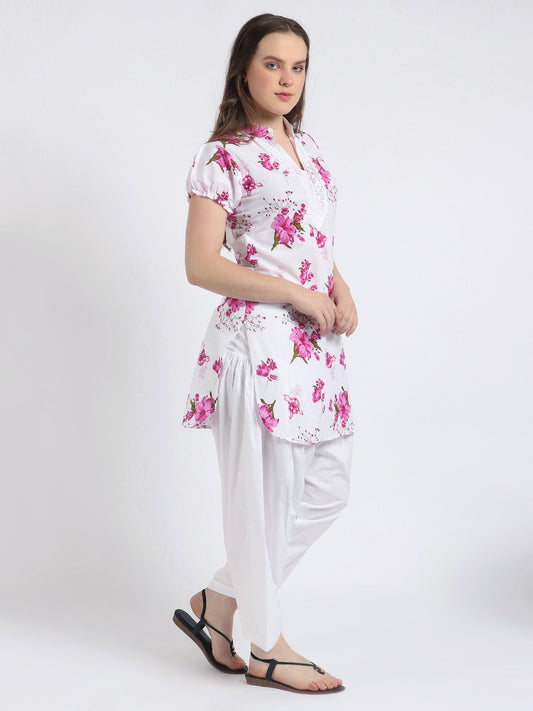 Trendzmy Women Printed Pink Kurta and Salwar Set Pure Cotton