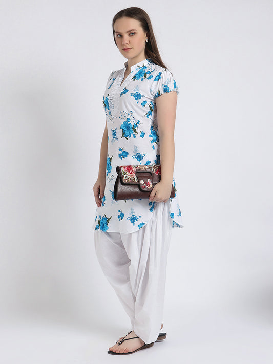 Trendzmy Women Printed Blue Kurta and Salwar Set Pure Cotton