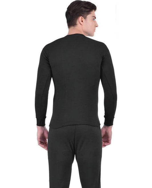 LUX COTT'S WOOL Black Full Sleeves Round Neck Men Top - Pyjama Set Thermal