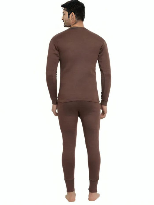 LUX COTT'S WOOL Brown Full Sleeves Round Neck Men Top - Pyjama Set Thermal