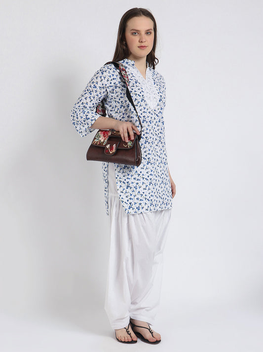 Trendzmy Women Printed Top Blue Kurta and Salwar Set Pure Cotton